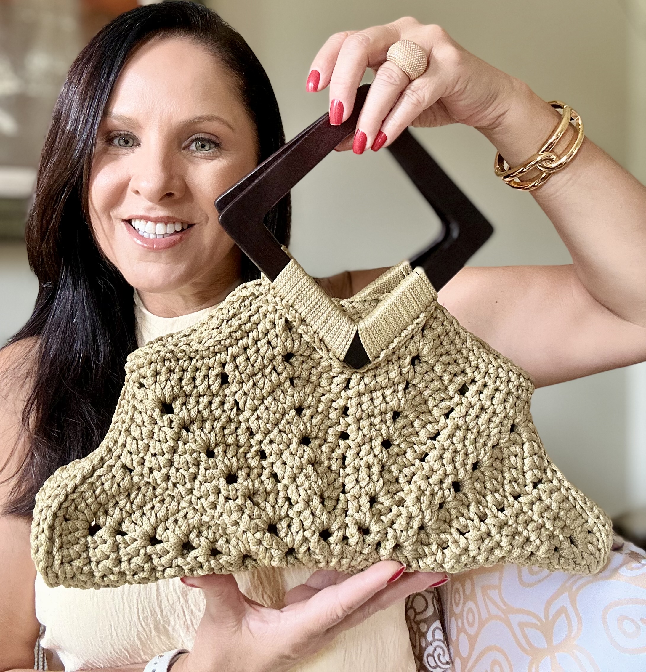 Feita à mão com fios e acessórios de alta qualidade, esta bolsa une o charme do crochê artesanal ao requinte de um acabamento impecável. Com design exclusivo na cor dourado, ela é totalmente forrada e possui bolso interno para celular e fechamento em botão imantado, essa bolsa exclusiva proporciona sofisticação em cada detalhe.